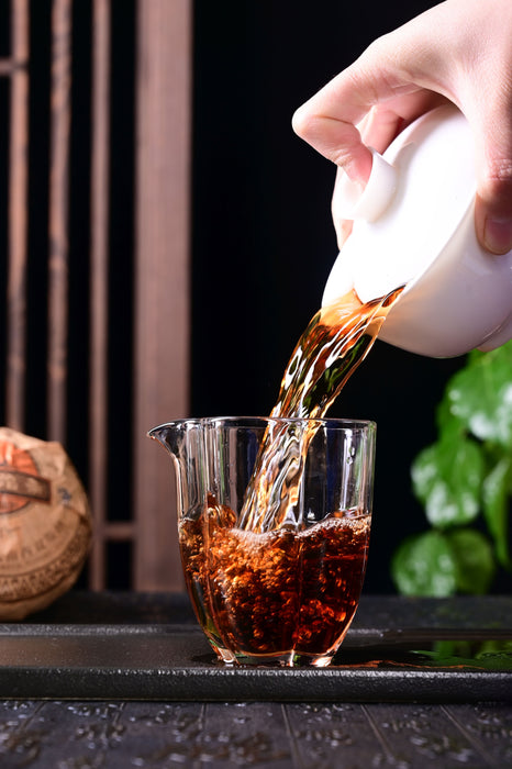This is a classic Ripe tea blend, called "V93", it was first released in 2005 and quickly became one the most expensive ripe teas on the market. To this day the 2005 and 2006 V93 Ripe productions have commanded very high prices due to the fact that this is one of the most sought after Ripe teas for everyday drinking. The 2007 is no slouch either, being smooth and full in the mouth. It is fermented just enough to break down the bitterness of raw pu-erh while lightly fermented enough to preserve the stimulating cha qi and hui gan of a raw pu-erh. After-taste is sweet and thick.